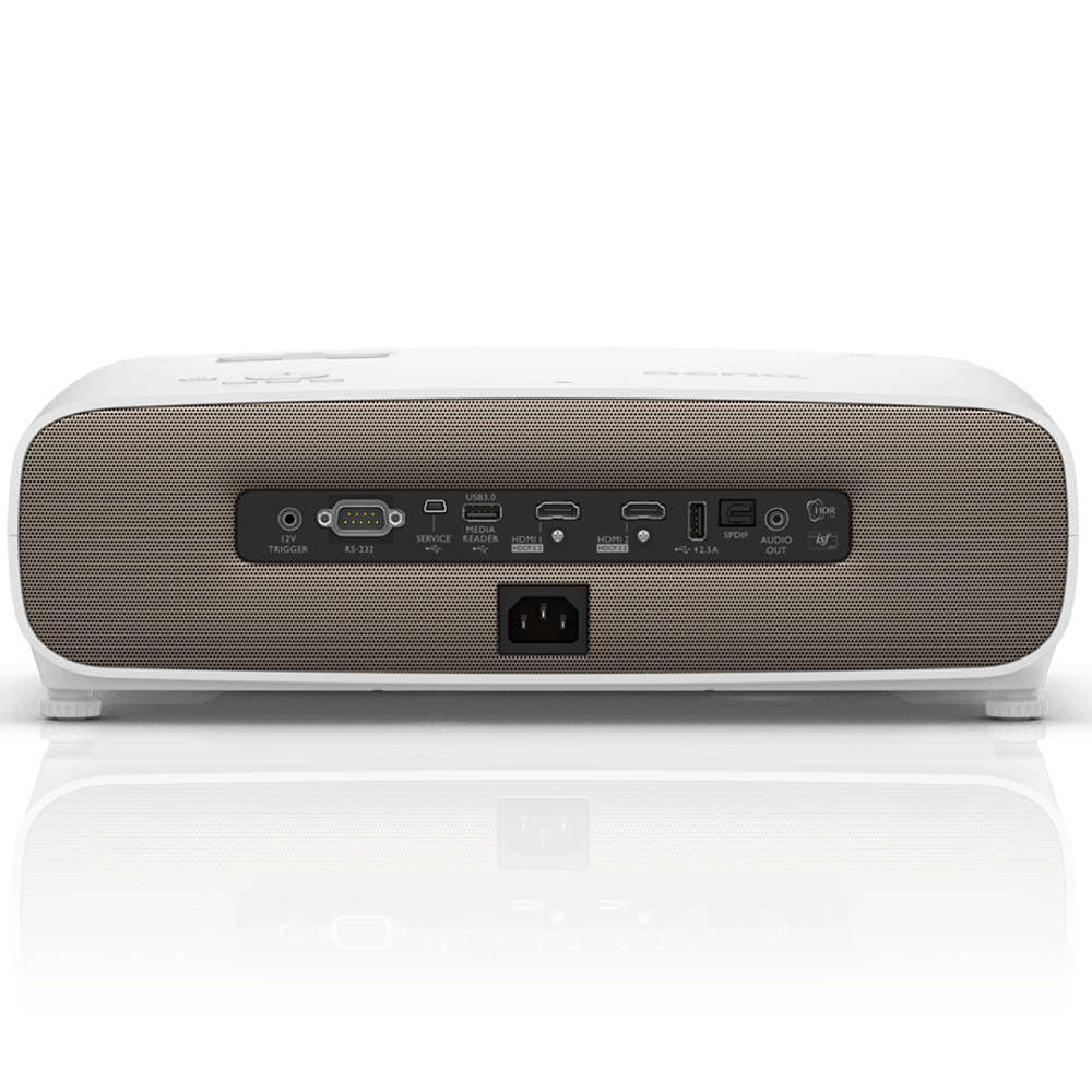 BenQ W2700 не е по-голям от типичните HD проектори за домашната всекидневна. Заоблените ръбове, металната лицева плоча и контрастиращото елегантно бяло покритие веднага го класират като истински проектор за домашно кино и забавление. Въртящите се ключове за увеличаване на картината и фокусиране са скрити под капаче в горната част, а черната плъзгаща се капачка на обектива е украсена с 4K лого. Плюс за W2700 е неговият стъклен обектив, включващ 10 елемента в осем групи, т.е. няма нищо общо с обичайните пластмасови обективи на бюджетни проектори и би трябвало да осигури далеч по-качествена картина. Обективът е способен да представя 100-инчово изображение (221.4х124.5 см) на доста близко разстояние от 2.50 до 3.27 м, което ще помогне при инсталацията дори и в по-малък хол, а в допълнение, проекторът предлага и вертикално изместване на картината +10%. Интерфейсът включва два HDMI порта, съвместими с 4K/ HDR, USB порт, способен да възпроизвежда голямо разнообразие от медийни файлове((MPEG1, MPEG4, H.263, Motion JPEG, MPEG1/2 Layer1, MPEG1/2 Layer2, FLAC, JPEG Base-line, JPEG Progressive, PNG non-interlace, PNG interlace, BMP), аудио изход (мини-жак), оптичен аудио изход, RS-232 порт за управление и 12V тригер за задействане на екран, щори или други устройства, както и 10W стерео звукова система.