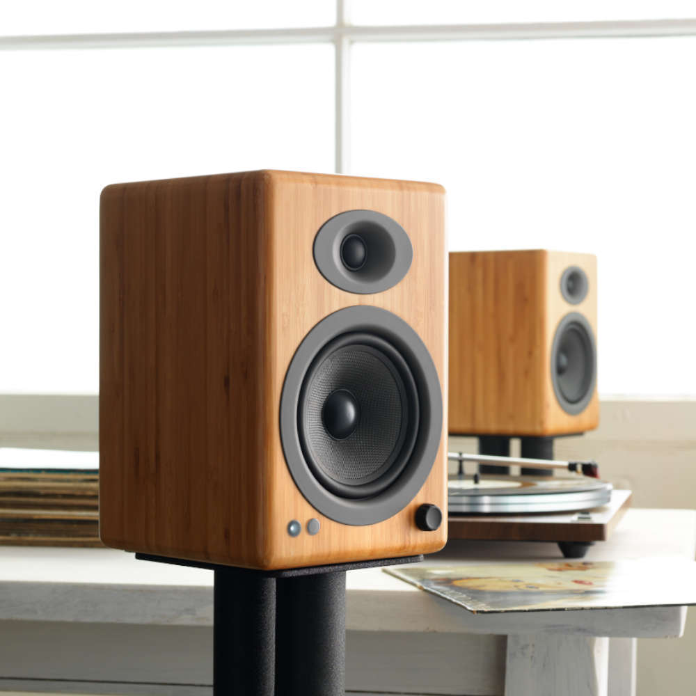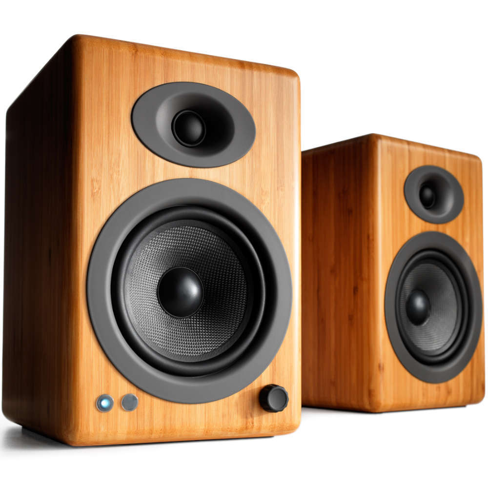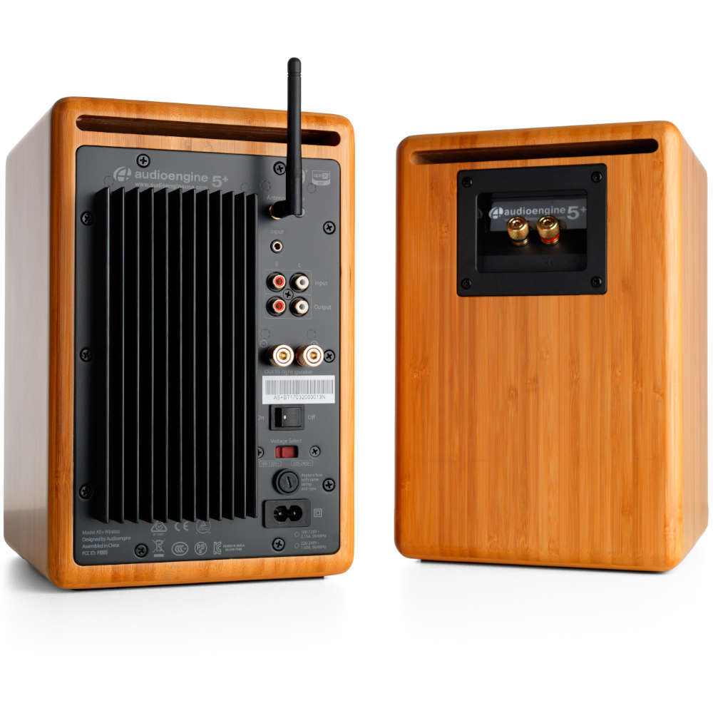 Audioengine A5+ Home Music System w/ Bluetooth aptX-HD бамбук са активни тонколони с ясен, пълен и мощен звук, който изпълва всяка стая. Те работят перфектно с всеки компютър (Mac или PC), iPod, iPhone и iPad (всички телефони и таблети), грамофони с вградени или външни предусилватели, телевизори с аналогов изход, CD и DVD плейъри, конзоли за видеоигри и всички продукти с Bluetooth, 3,5 мм мини жак или RCA изходи без софтуер за инсталиране или настройки за промяна. Сдвояването на вашето устройство с Bluetooth тонколоните е мигновено и връзката е изключително устойчива (30м обхват).