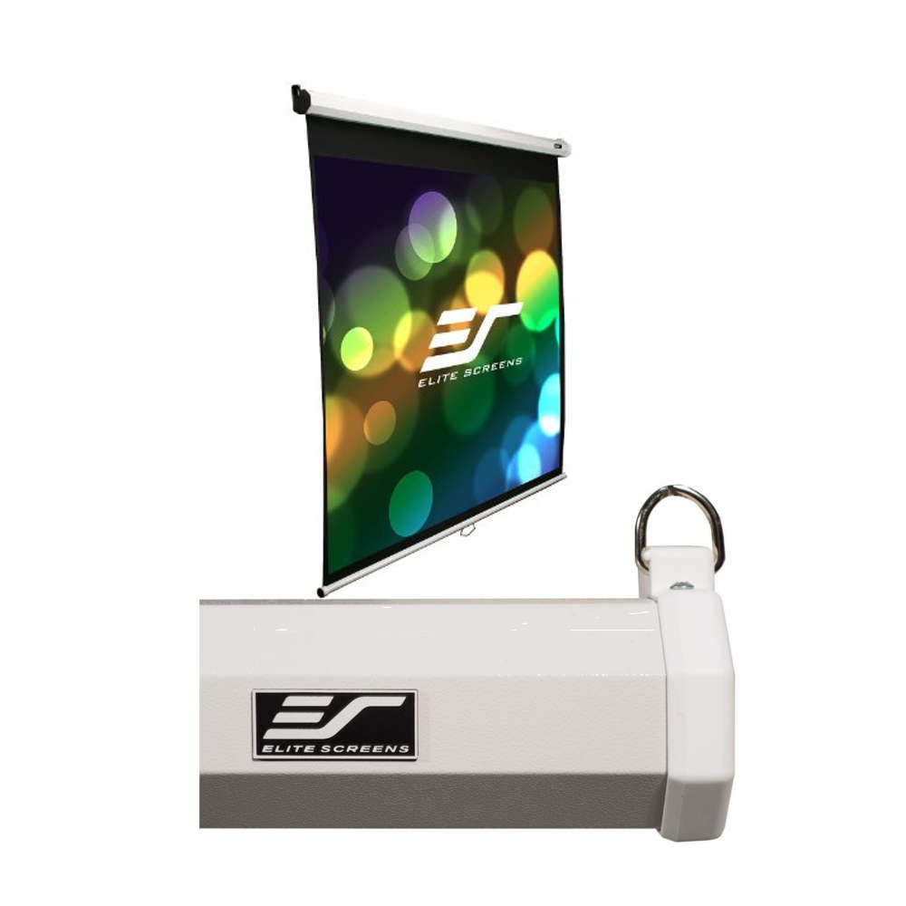 Ръчният ролетен екран за проектор Elite Screen M135XWV2 е с размер на изображението 274.3x205.7 см., диагонал 135"и бял корпус. M135XWV2 е от ценово ориентираната серия прожекционни екрани Elite Manual Pull-down series, удачни за стенен или таванен монтаж в училища и бизнес офиси. Платното на всички модели от серията е със стереотипни черни маскиращи гранични ленти и от четирите страни за засилване на контрастното съотношение на картината. То е с черна задна част и е 4K Ultra HD Ready със 180° ъгъл на гледаемост.