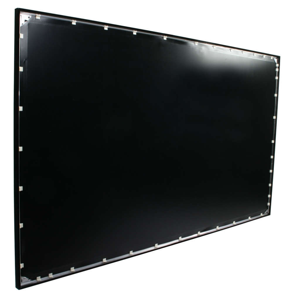 Elite Screen PVR100WH1 е луксозен екран за проектор с фиксирана рамка от серията Peregrine HD с размери на картината 221.0x124.0 см. и съотношение на страните 16:9, подходящ за монтаж на стена при изграждане на домашно кино. Екранната повърхност е изпълнена с платно CineWhite, предназначено за предна прожекция, опънато постоянно върху здрава сглобяема алуминиева рамка, покрита с черно кадифе. Стенните скоби за монтаж позволяват на неподвижната рамка да се плъзне леко встрани, важна функция, която позволява екрана да бъде правилно центриран. При почистване използвайте влажна мека кърпа с топла вода, за да се отстранят всички следи по повърхността на рамката или на екрана.