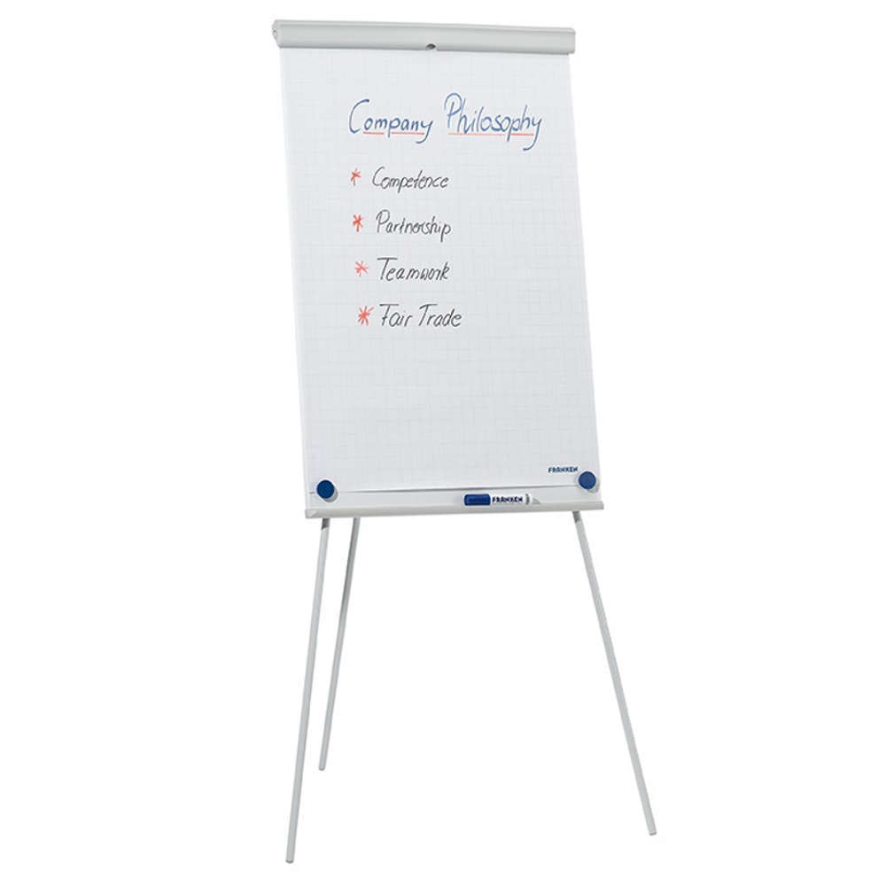 Franken X-tra Line EL-FC20 е стандартен флипчарт с размери на магнитната дъска 68х105 см., с лаково покритие и статив с три крачета в сив цвят. Таблото е устойчиво на надраскване и е подходящо за писане и рисуване с маркери за бяла дъска. Флипчартът предлага тавичка за маркери и гъба за бяла дъска, както и държач за всички видове хартия за флипчарти. Максималната му височина се регулира до 188 см. Подходящ за честа употреба в офиси, конферентни зали и обучителни центрове.