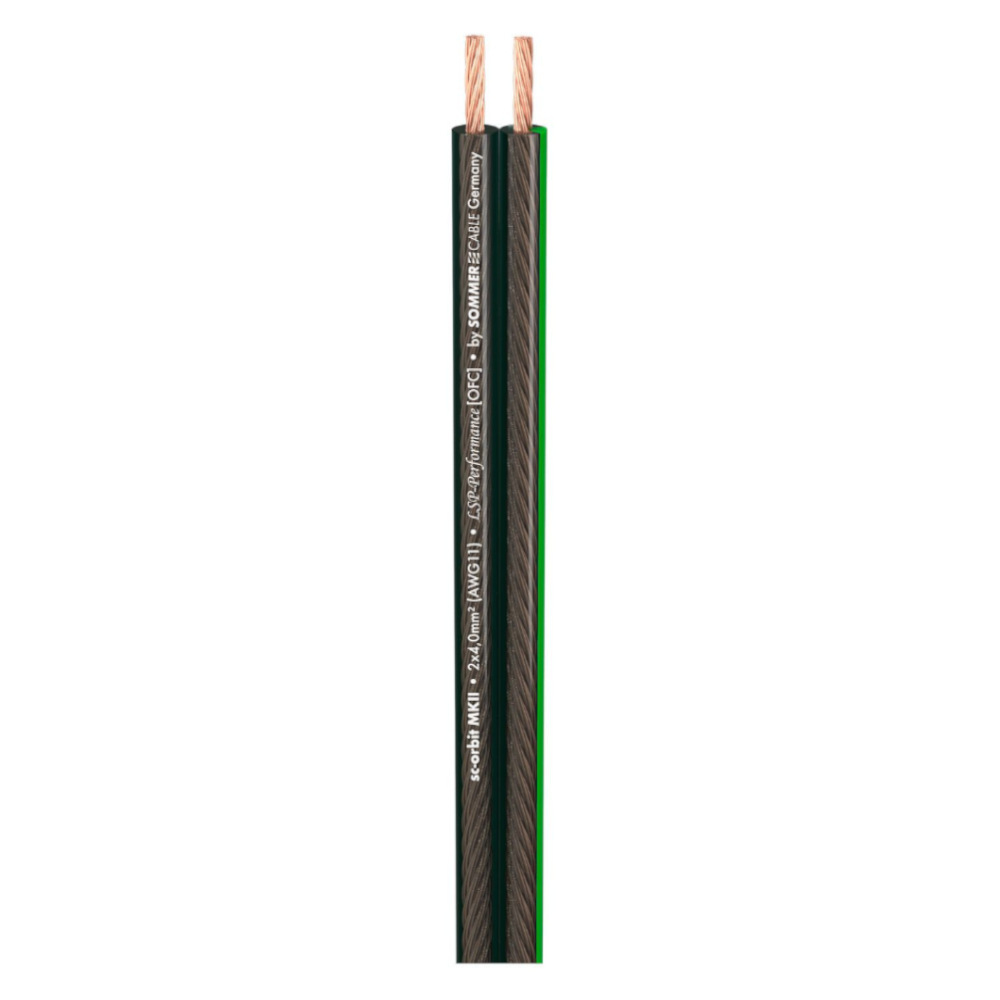 Кабел за тонколони Sommer Cable SC-Orbit 240 MKII 2 х 4.00 квадратни милиметра е с PVC изолация и ефектен черно-зелен цвят. Проектиран е специално за тонколони, както в системи за домашно кино и Hi-End, така и е подходящ за окабеляване и използване в по-професионална среда, а именно т.нар. (Публично-оповестителни аудио системи). Благодарение на стегнати, плътно навити медни проводници под изолацията на кабела, медната нишка има необходимата повърхност и сечение за много по-чисто и детайлно предаване на средните и високите честоти.