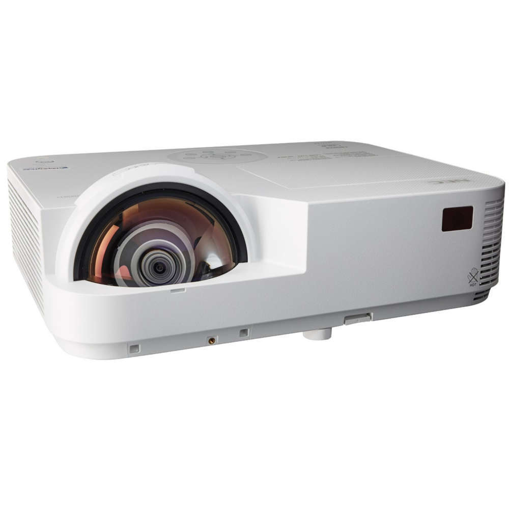 NEC M333XS е DLP базиран късофокусен мултимедиен проектор, проектиран за работа в светли класни стаи и малки бизнес офиси. Благодарение на висококачествения късофокусен обектив, M333XS осигурява големи 80-инчови изображения на близко разстояние от 91 см. като отнема малко място и е лесен за настройка. С Texas Instruments DLP™ чип и технологията BrilliantColor™, проекторът предлага голям 10000: 1 контраст с висока яркост на картината от 3500 лумена и XGA собствена резолюция. Можете да изберете подходяща икономична настройка от ECO [AUTO ECO], [NORMAL] и [ECO], включително [ROOM LIGHT SENSING], [CONSTANT BRIGHTNESS] и [AUTO-DIM] в зависимост от вашата обстановка. Разширените ECO настройки позволяват да се намали консумацията на енергия и да се удължи живота на лампата до 8000 часа, като се контролира нейната яркост. NEC M333XS е с екранирана оптика и безфилтърен дизайн, който елиминира неудобството и времето, прекарано в мониторинга и/ или смяната на филтри. Проекторът разполага с богат избор на входове, изходи и различни потребителски функции.