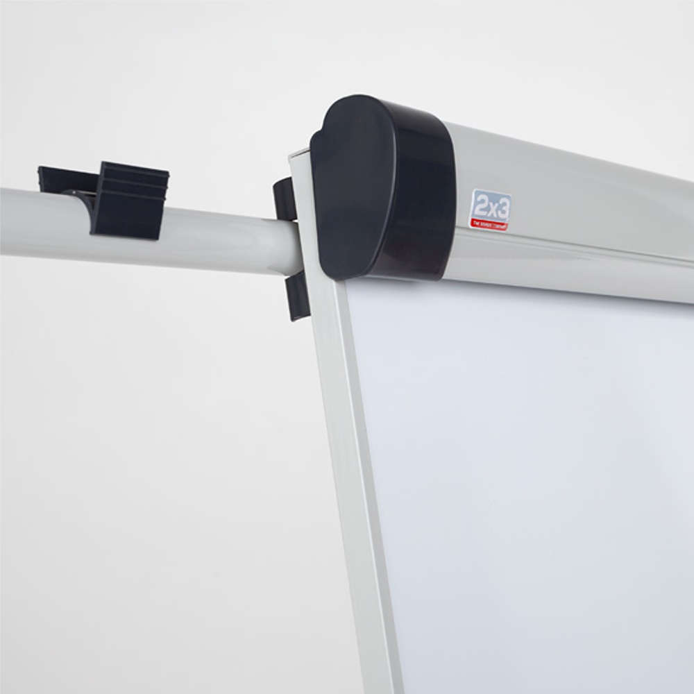 2x3 Classic TF04 е магнитен флипчарт с две рамена и статив с крачета. Флипчартът е оборудван със стоманена лакирана бяла дъска с размери 70х100 см, като използваемата работна повърхност е 70х92 см. Дъската позволява писане и рисуване с маркери за бяла дъска, Универсален държач за бележници с регулируемо разстояние между куките позволява използване на различни видове блок за флипчарт. Двете рамена са с дължина по 70 см. и позволяват изписаните листа да се преместват и да остават видими от аудиторията. Флипчартът може да бъде регулиран по височина до 186 см. Покритието на триножника е в приятен графитен цвят.