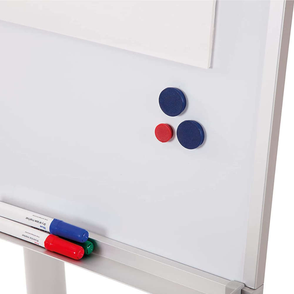 Магнитен флипчарт Bi-Office SMART MOBILE EASEL EA4806716. Мобилният флипчарт е с бяла дъска 70х100 см. със сива алуминиева рамка и поставка за маркери и гъба. Магнитната лакирана стоманена повърхност на дъската е идеална за честа употреба и е с лесно почистване. Флипчартът позволява да обмисляте и представяте идеи като пишете на хартия за флипчарт, директно на дъската или прикрепвате с магнити за бяла дъска вашите записки. Бялото табло е оборудвано в горната част с регулируем държач за листа, подходящ за всички блокове за флипчарт. Флипчартът е със здрава подвижна основа с 5 заключващи се колела за повишена стабилност, така че да се премества лесно между различни помещения.