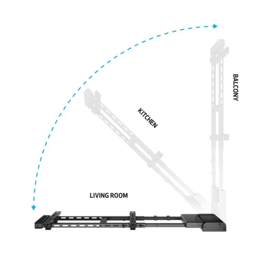 TV стойката може да бъде програмирана да работи с вашето собствено дистанционно за телевизор или с включеното такова с минималистичен дизайн. Възможността за избор на предварително зададена предпочитана позиция ви позволява да завъртите мигновено вашия телевизор до определен ъгъл.