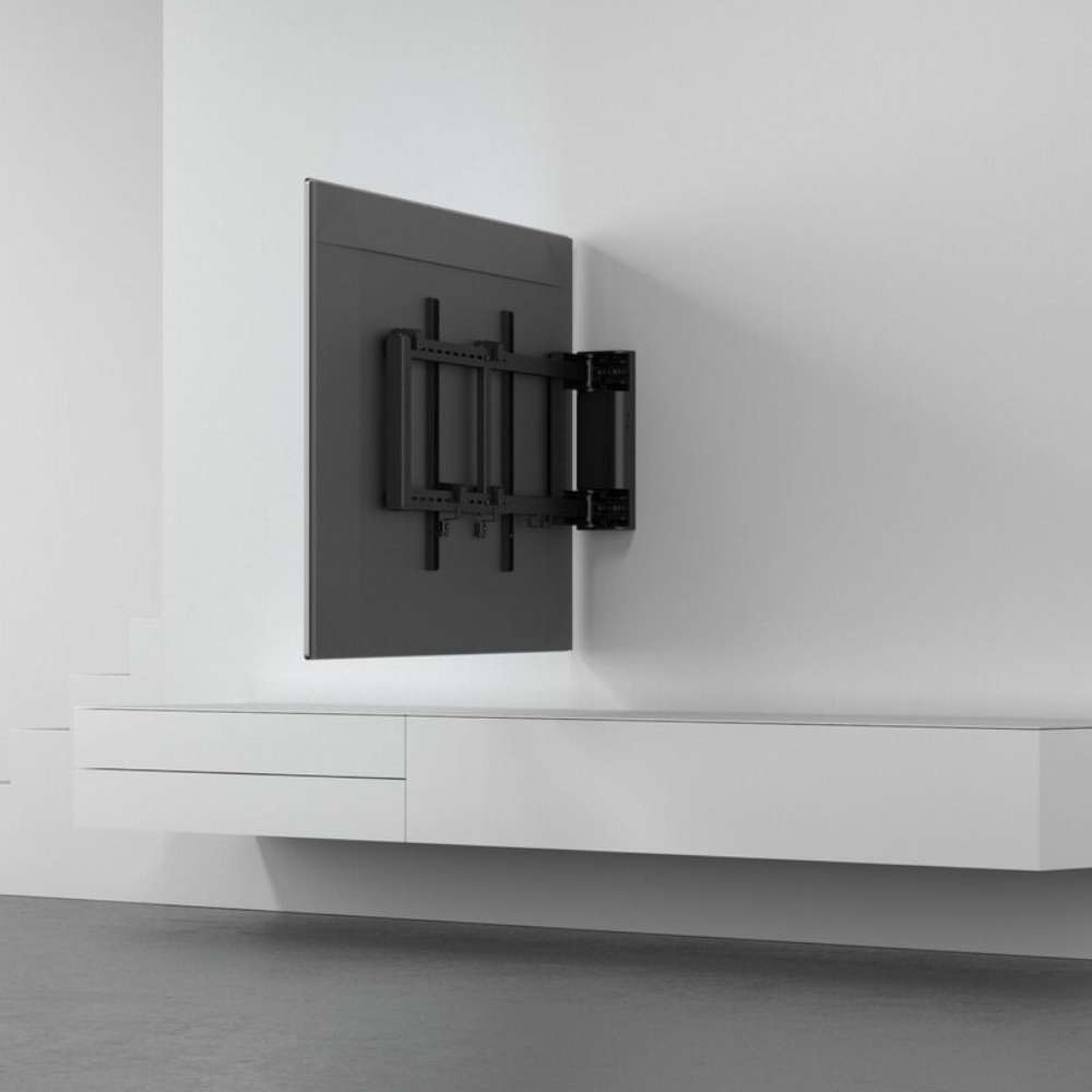 Стойката за телевизор MB4500 е с оригинален дизайн-едновременно функционален и стилен. Телевизорът може да се монтира така, че е възможно завъртане наляво или надясно на 90° в зависимост от нуждите ви. Когато телевизорът е изключен, моторизирана въртяща се стойка се връща в началната си позиция само с 5 сантиметра разстояние между стената и дисплея. Безопасността е гарантирана с вградена функция за спиране в случай, че нещо блокира въртеливото движение.