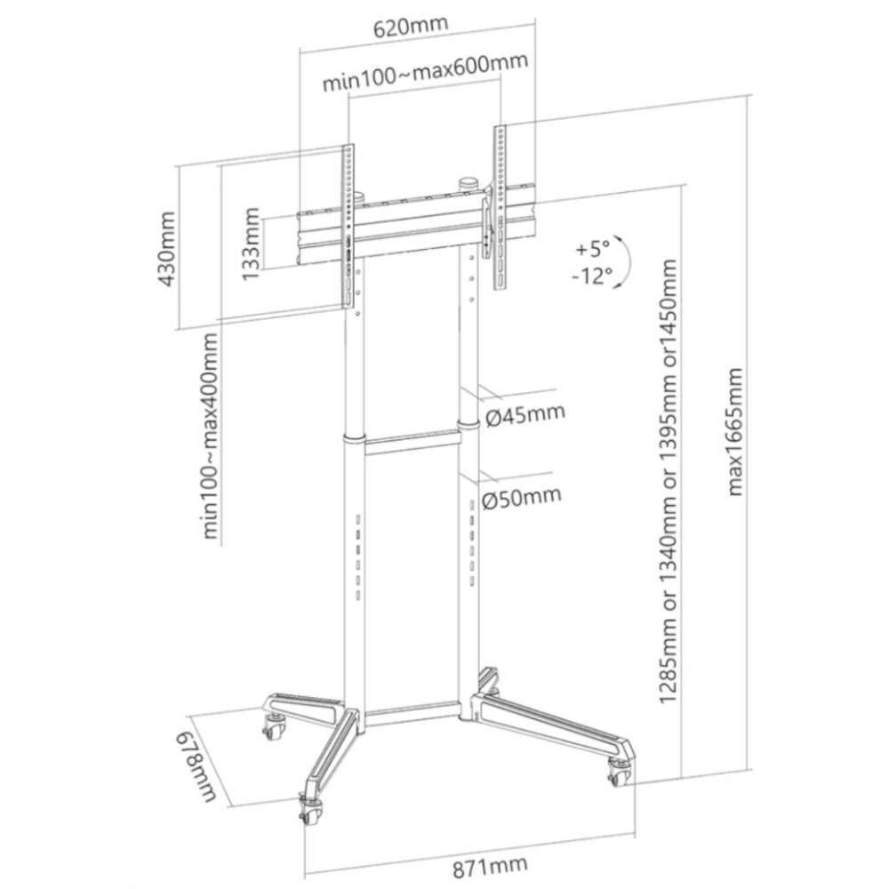 Neomounts by Newstar FL50-540BL1 е подвижна стойка, подходяща за телевизори, монитори, публични и тъч дисплеи с плосък екран до 70", с максимално тегло до 50 кг. и VESA от 100x100 до 600x400 мм. FL50-540BL1 е мобилна подова стойка, оборудвана с четири стабилни колелца, две от които се заключват, за да предотвратят нежелано преместване. Стойката е изработена от прахово боядисана в черен цвят стомана, стабилна и надеждна. Височината може да се регулира от 128.5 до 145 cm на четири стъпки. В допълнение TV стойката предлага наклон от +5° до -12° за постигане на оптимален ъгъл на гледане без отблясъци, а интелигентна система скрива и насочва кабелите, така че всичко да бъде подредено.