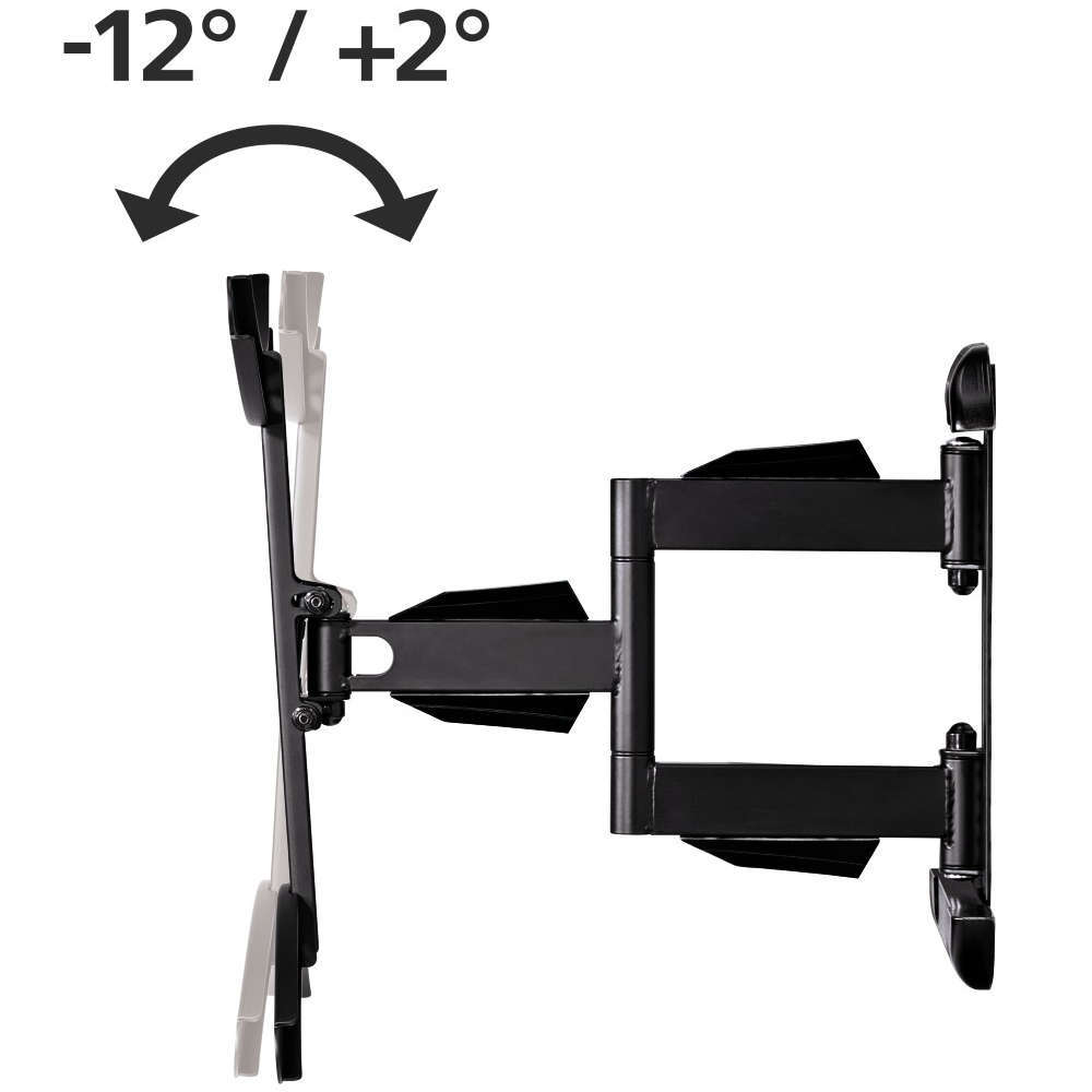 HAMA-118620 е стойка за инсталиране на стена на телевизори с плосък екран с диагонален размер на екрана от 37 до 75 инча (94 см до 190 см) и максимално тегло 45 кг. TV стойката се фиксира лесно и позволява напълно регулируема ориентация на вашия телевизор. Поставката е въртяща се на 180° в три точки, може да се наклони в рамките на +2/ -12° и осигурява разстoяние до стената от 5.4 см до 47.8 см. HAMA-118620 е в елегантен черен цвят, окомплектована с необходимите крепежи, нивелир и шаблон за пробиване. Съвместима е с всички VESA стандарти от 200x200 до 600х500 мм.