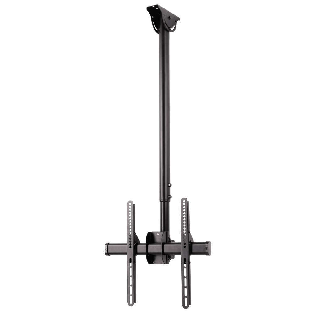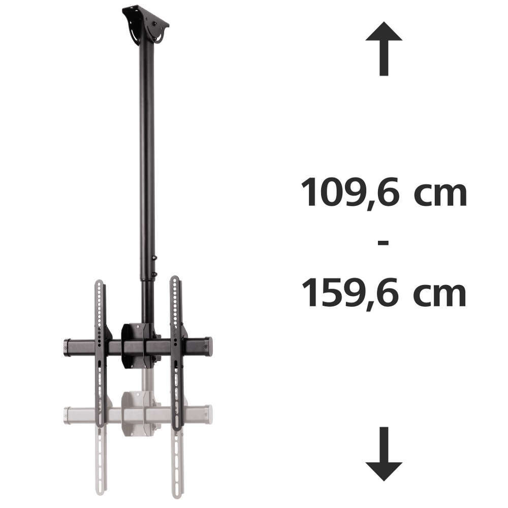 HAMA-118655 е таванна стойка за телевизор с регулируема дължина, подходяща за инсталирането на телевизори с размер на екрана от 32 до 65 инча (81 до 165 см). TV стойката за таван пести място, осигурява скриване на кабелите в тръбата и здрав захват на вашия телевизор. Минималната й дължина е 126,8 см, а максималната дължина е 176,8 см., като поставката позволява плавно регулиране на разстоянието. Стойката може да се накланя на 25° и да се завърта на 360°. Идеална е за монтаж на телевизори в помещения с висок таван или при наличие на наклонен таван. Нивелирането на телевизора може да бъде извършено и след монтажа. Комплектът включва HAMA-118655, монтажен кит (вкл. Fisher контакт) и инструкция за монтаж на телевизора.